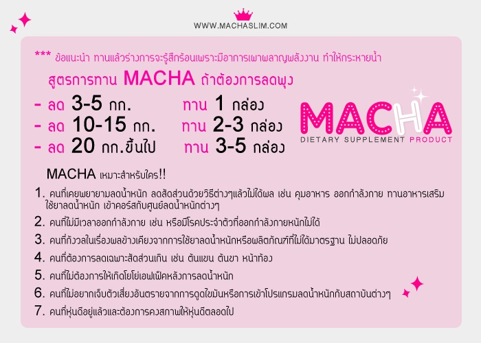 วิธีทานมาช่าให้เห็นผล แนะนำให้รับประทาน 1 เม็ด หลังมื้อเช้า และดื่มน้ำตาม 1-2 แก้ว